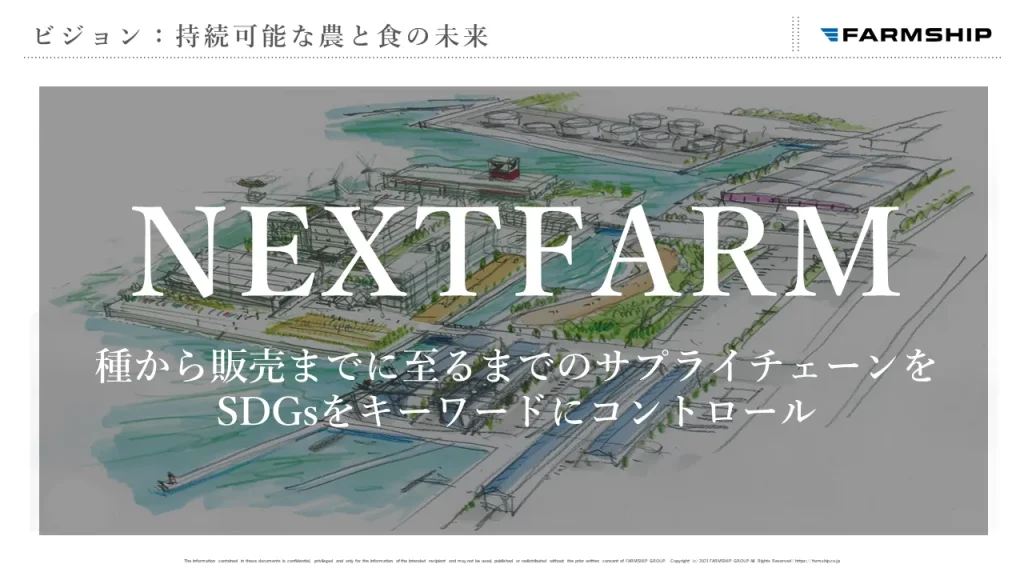 ピッチプレゼンでは、植物工場を手段に農と食の持続可能な未来の実現を目指すための当社の事業展開とビジョン:NEXTFARMを紹介しました。